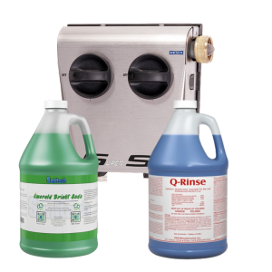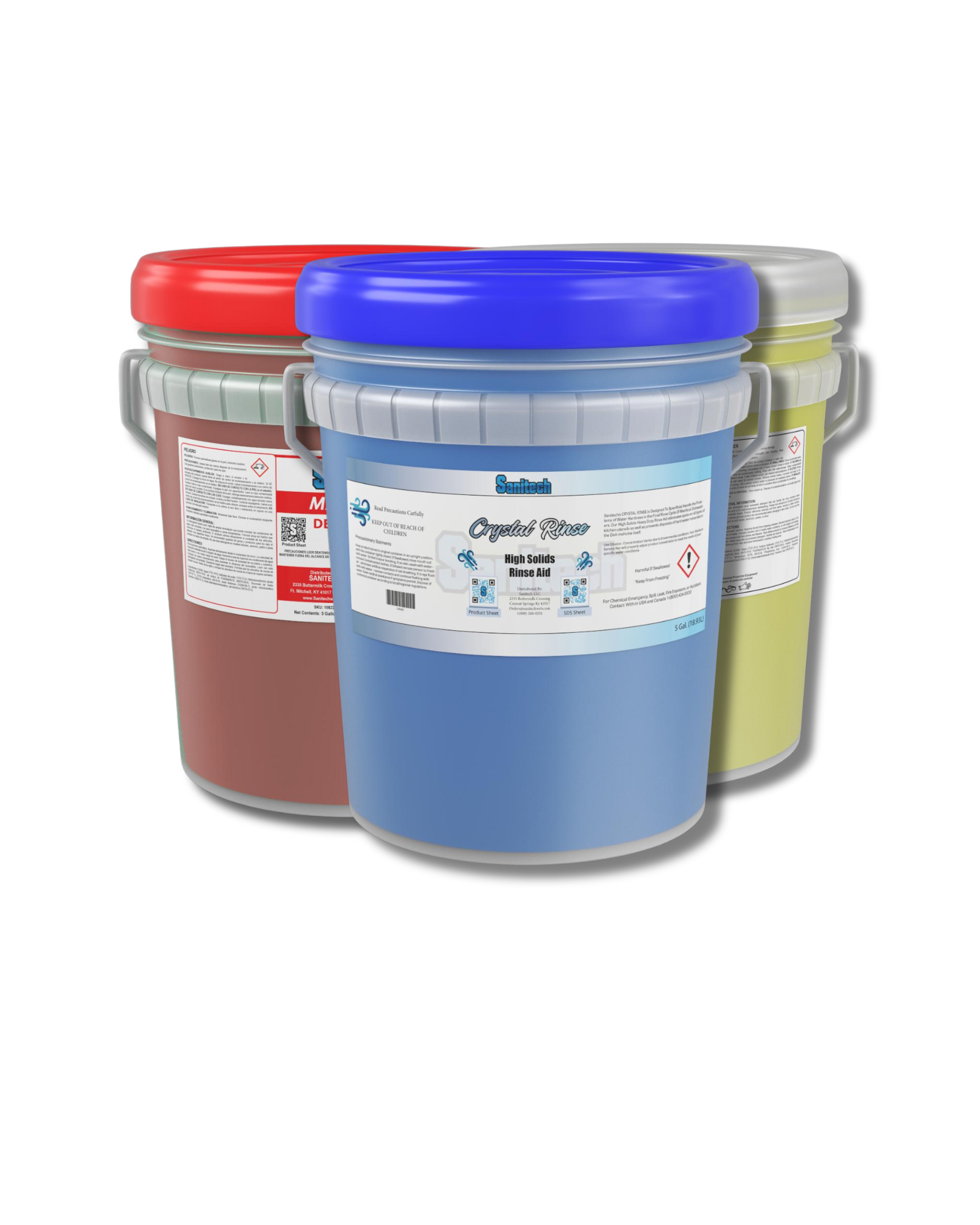 Keep your operation running smoothly with our complete line of commercial dishmachine chemicals. Our core warewashing system includes powerful CS detergent for thorough cleaning, premium rinse aid for spot-free results, and effective lo-temp bleach sanitizer for health department compliance.